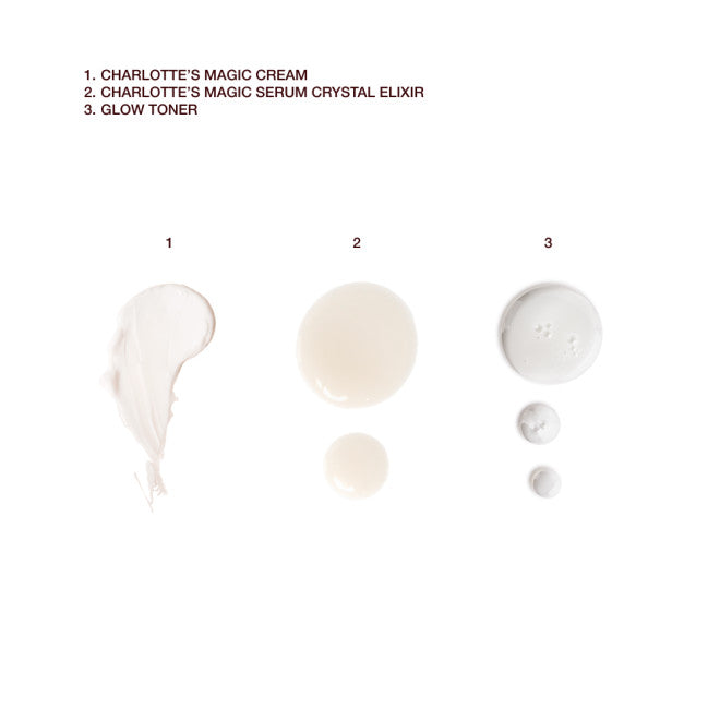 - Crema hidratante Charlotte's Magic Cream de tamaño de viaje (15 ml): el secreto de la luminosidad y el brillo de la juventud en un bote. La Charlotte's Magic Cream es mi popular y galardonada crema hidratante para que disfrutes de una PIEL MÁGICA. Fue creada originariamente entre bastidores para transformar la piel de las modelos en un instante antes de los desfiles, y se convirtió en un producto TAN icónico que tuve que guardarlo en un frasco. Enriquecida con mi matriz de 8 aceites e ingredientes mágicos, como el ácido hialurónico, las vitaminas C y E y el complejo rellenador con péptidos, es el secreto para tener un cutis de aspecto joven y luminoso y para REVITALIZAR LA PIEL AL INSTANTE.